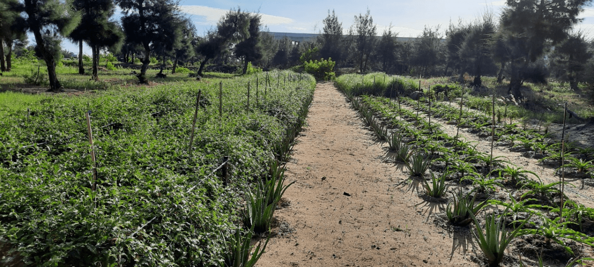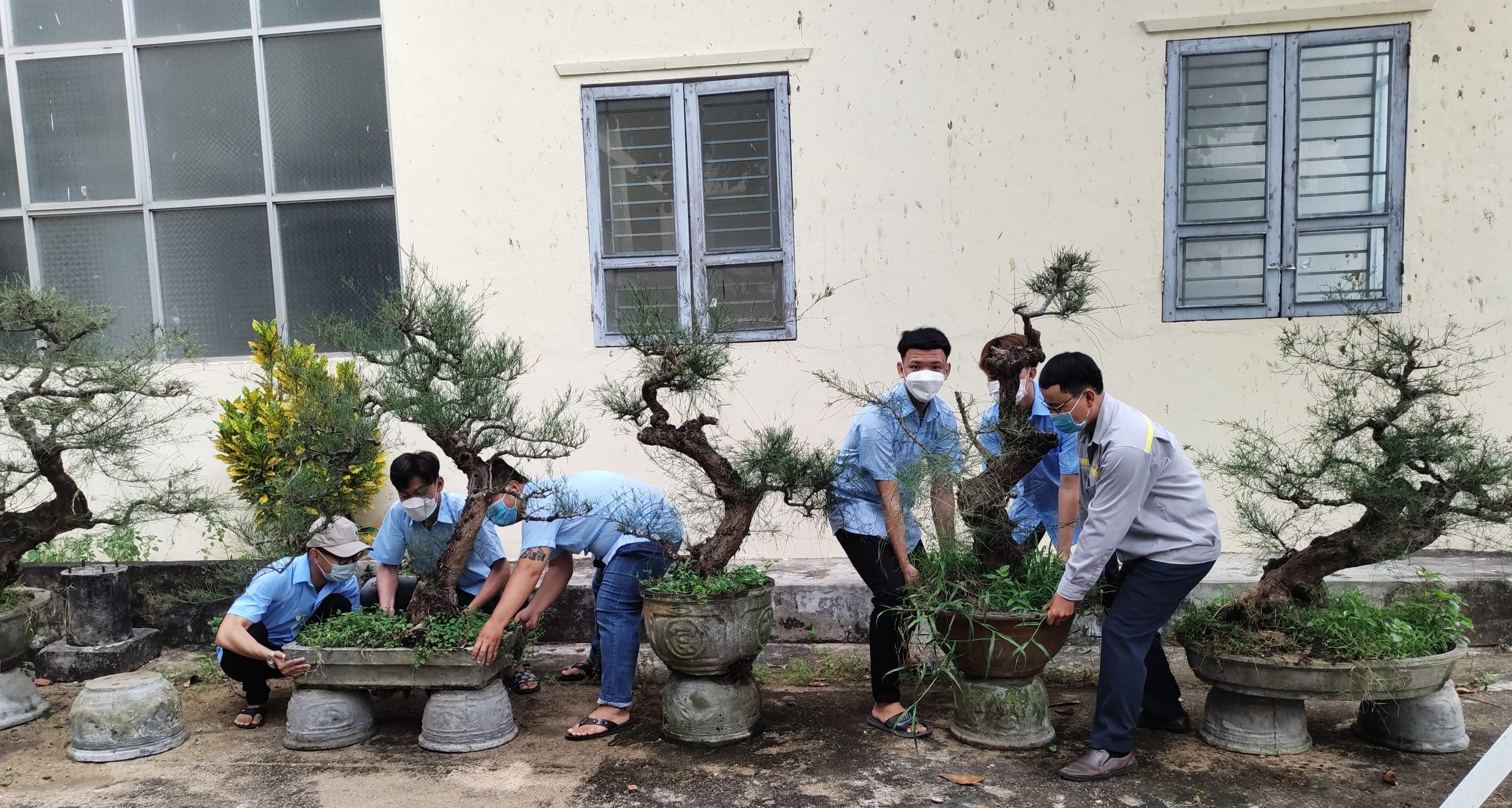 Và vị trí ở sát nhà máy sản xuất nước uống, bằng sự sắp xếp và bố trí hài hòa với khung cảnh. LCĐ đã đặt vào đây dãy chậu cảnh phi lao với dáng vẻ mạnh mẽ, uy nghiêm với các chồi non mơn mởn đang bừng trỗi dậy như khát vọng phấn đấu không ngừng học hỏi, sáng tạo vì ngày mai lập nghiệp cả HSSV Mitc.