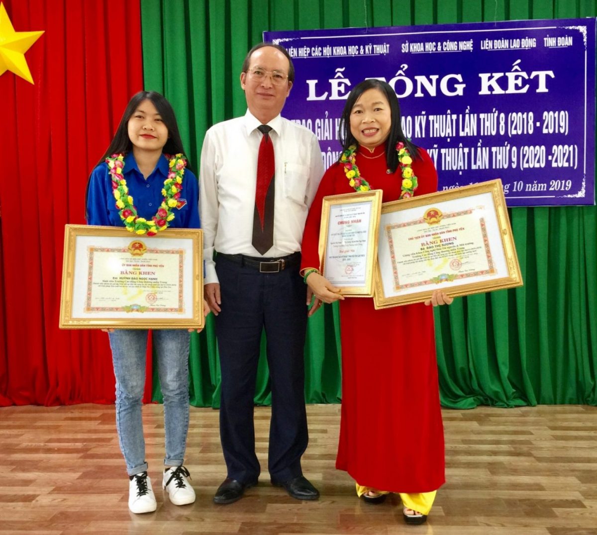 Nhận giải thưởng khoa học công nghệ cấp Tỉnh (Hình thứ 2 từ trái qua phải)