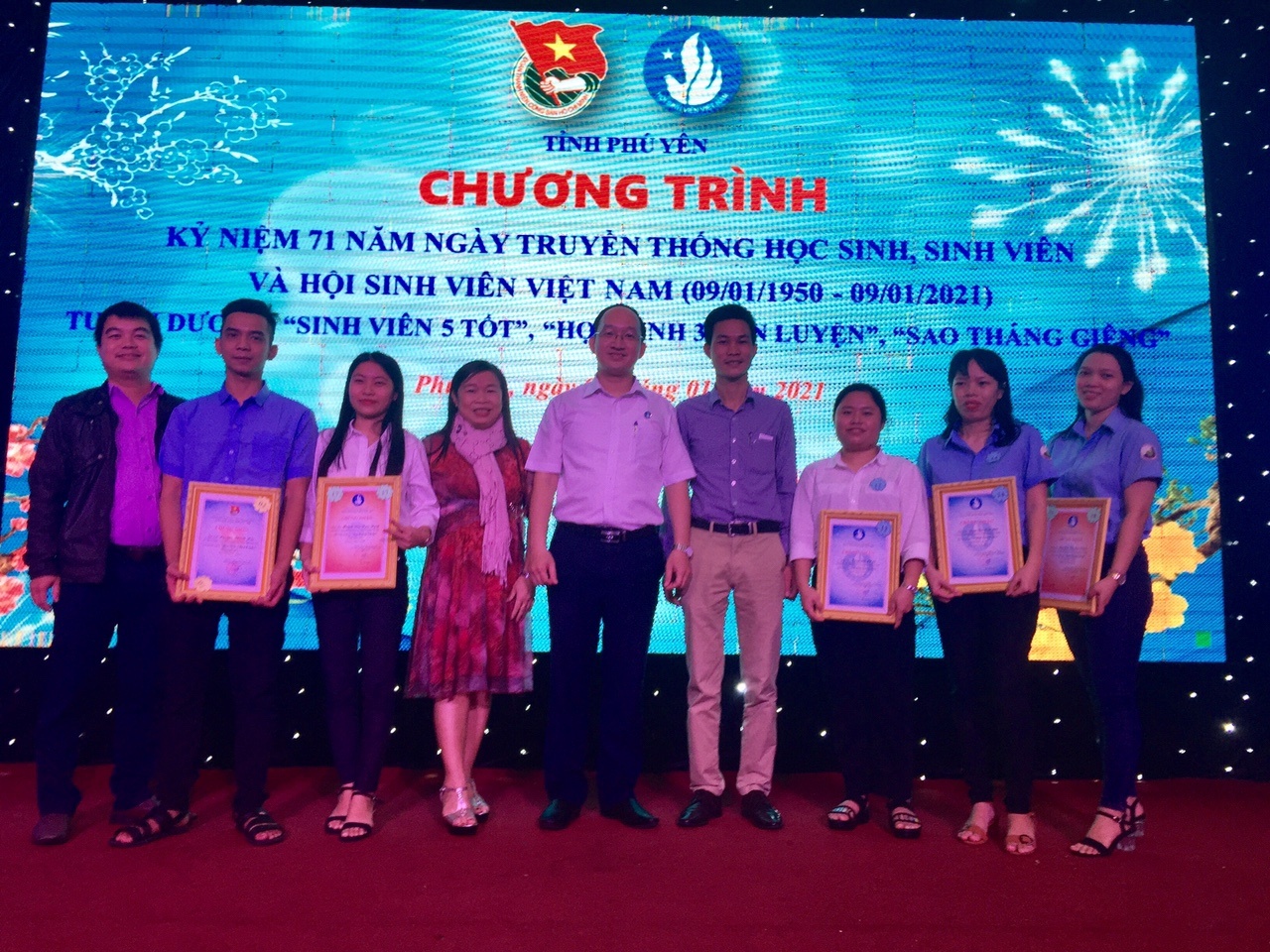 Nhận giải thưởng sinh viên 5 Tốt cấp Tỉnh (Hình thứ 3 từ trái qua phải)