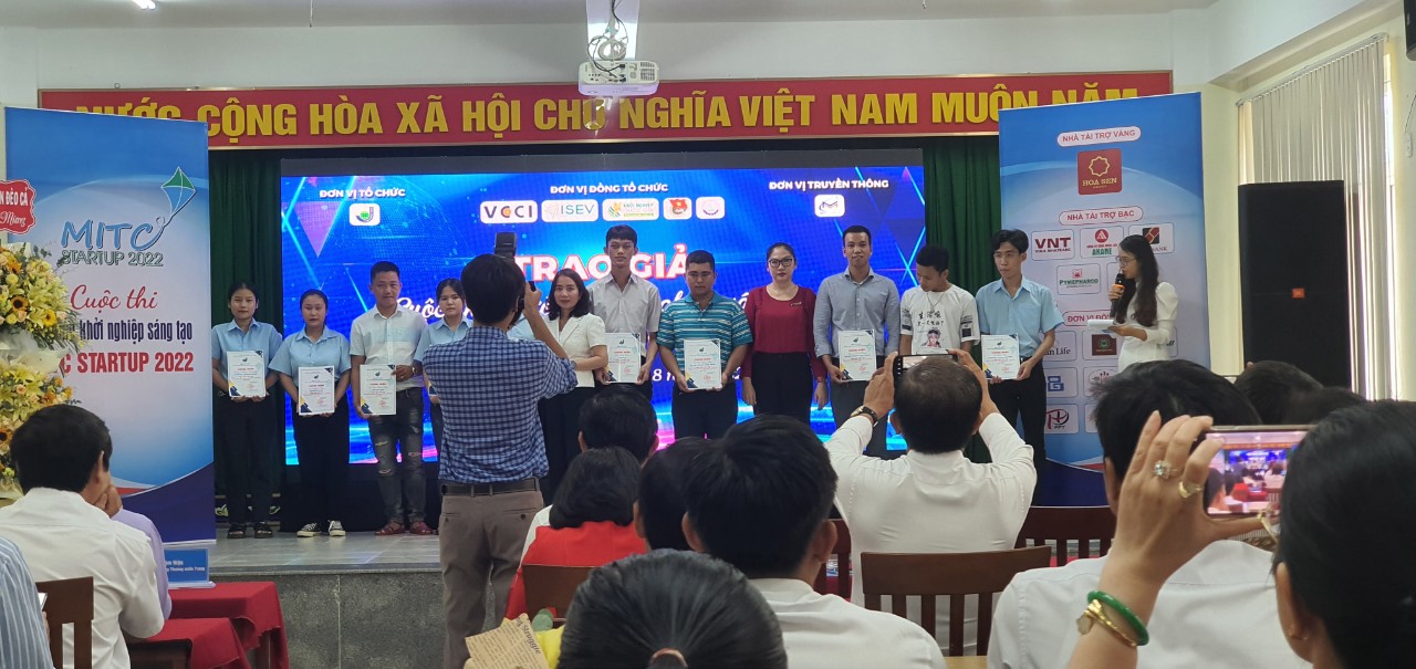 Huỳnh Xuân Kỷ nhận giải thưởng cuộc thi MITC STARTUP 2022 (người nhận giải thứ 3 từ phải sang)
